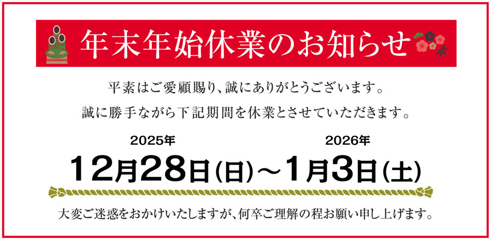 定休日 : 毎週火曜日・第1/第3水曜日(祝祭日と重なった場合は変更することがあります)