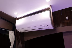 家庭用エアコンを装備。エンジン停止時でも快適な車内を確保します。